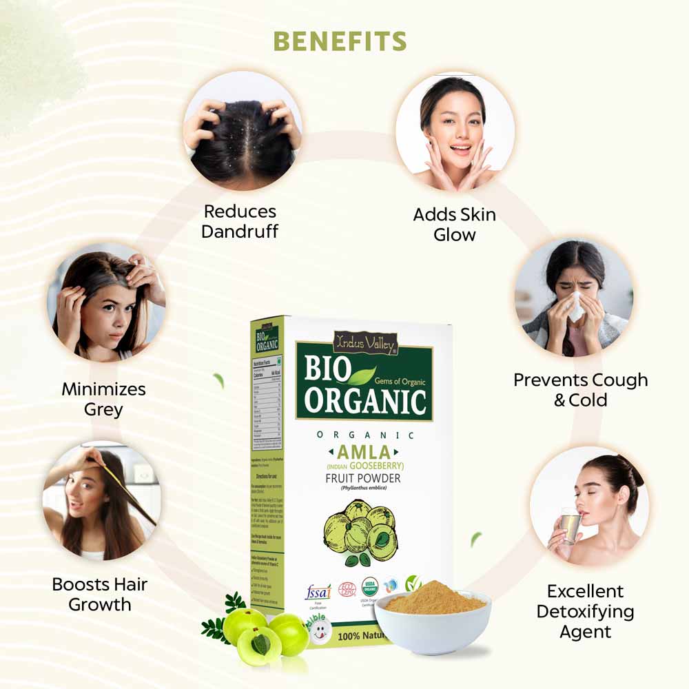 Amla fruit powder, offers several benefits, Hair growth, Hair conditioning, Scalp health, Antioxidant-rich, Skin brightening, Collagen production, Skin nourishment, and Makes a detoxifying energy drink, etc.