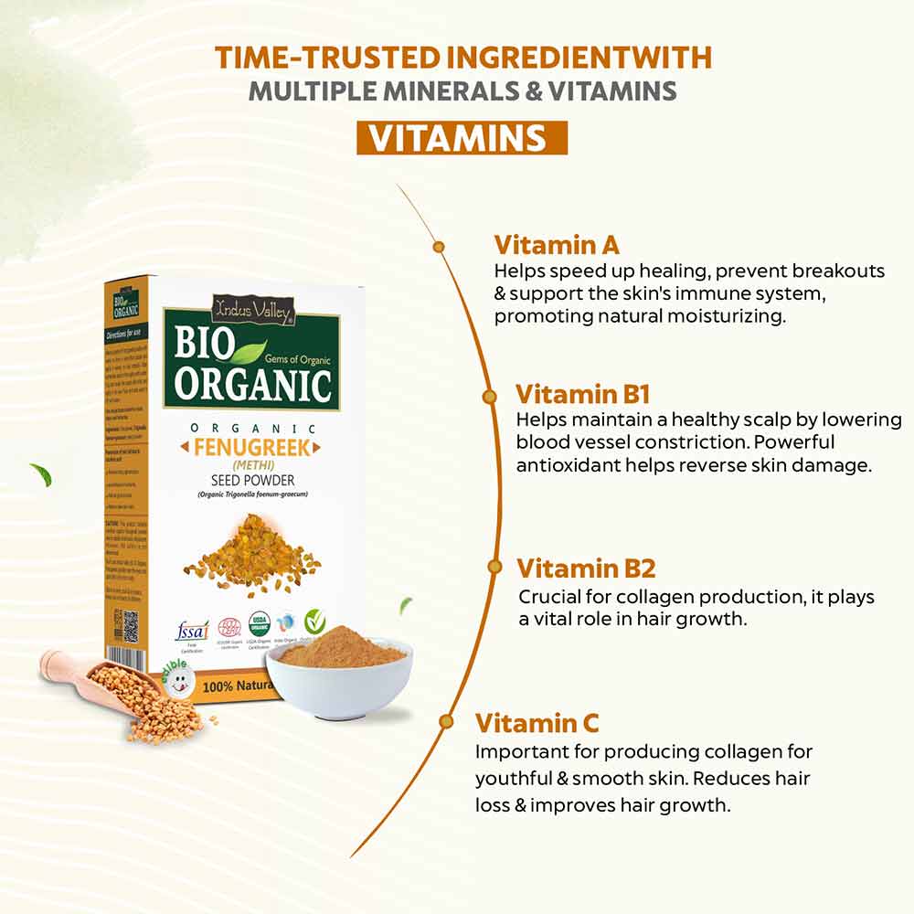 Bio Organic Fenugreek Seed Powder is carefully prepared from organically cultivated fenugreek seeds that are naturally shade-dried and finely ground to preserve their goodness. This 100% pure and certified organic powder is valued for its versatile benefits for both beauty and wellness.