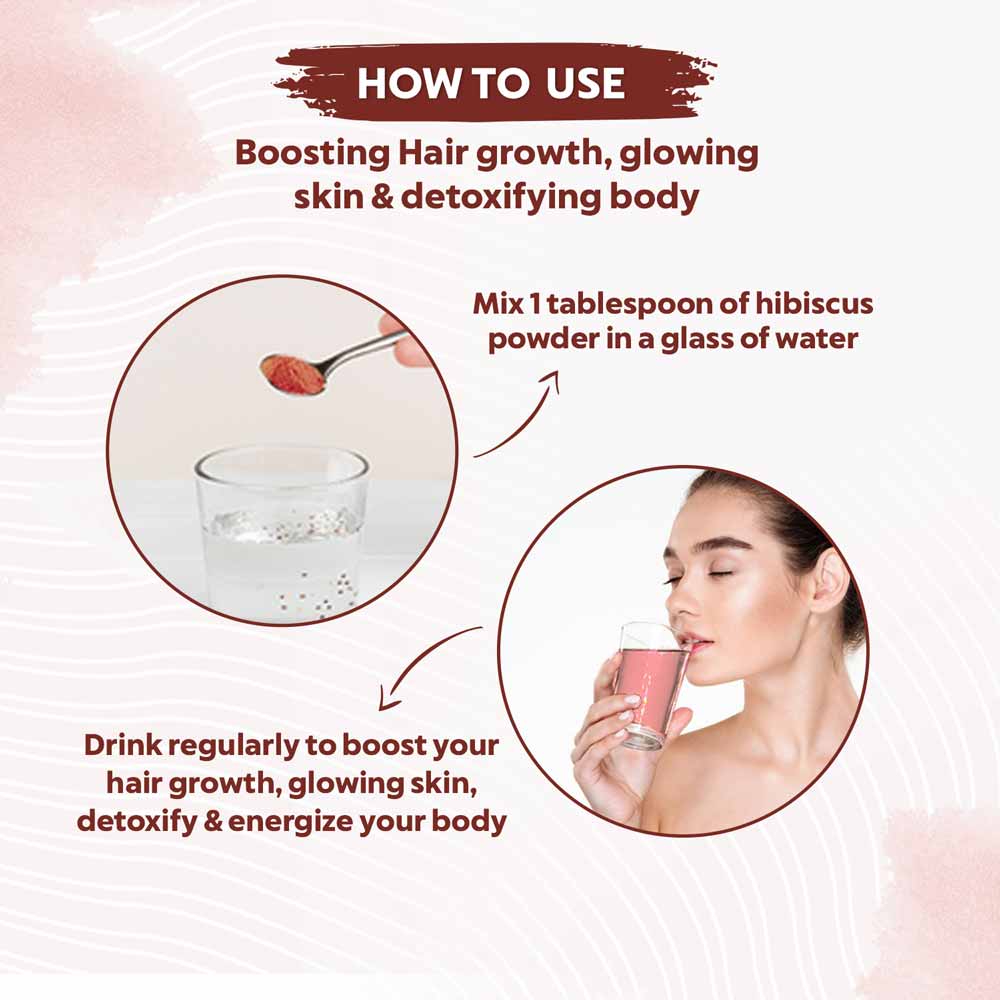 This hibiscus powder is certified edible by FSSAI, making it safe for internal use as well. When consumed as tea or infused water, it provides antioxidants that support immunity and overall wellness. Traditionally, hibiscus tea has been used to aid digestion and support gallbladder health while offering a refreshing, caffeine-free beverage option.