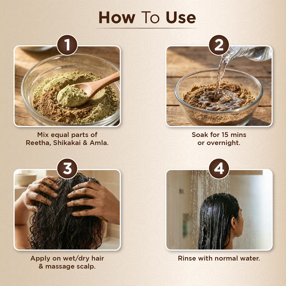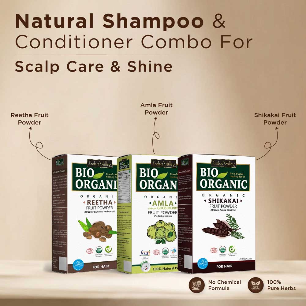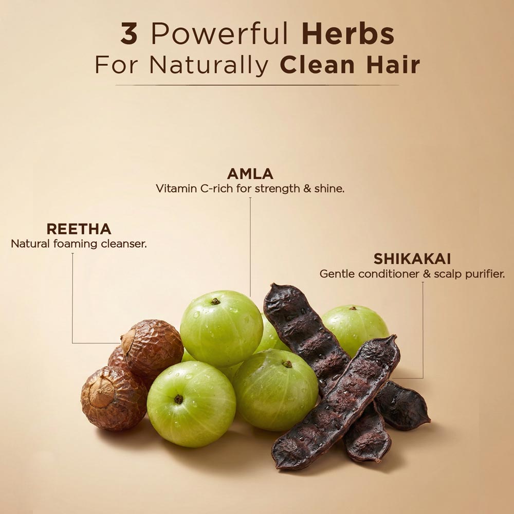 Amla, reetha, and shikakai are three well known herbal ingredients that have been used in hair care for centuries. There are innumerable recipes that are used for curing hair problems using all three or at least one of these organic ingredients. When it comes to boosting hair growth, preventing premature greying of hair, strengthening hair from the roots, treating dandruff, rough and frizzy hair, these are the three ingredients that are always recommended