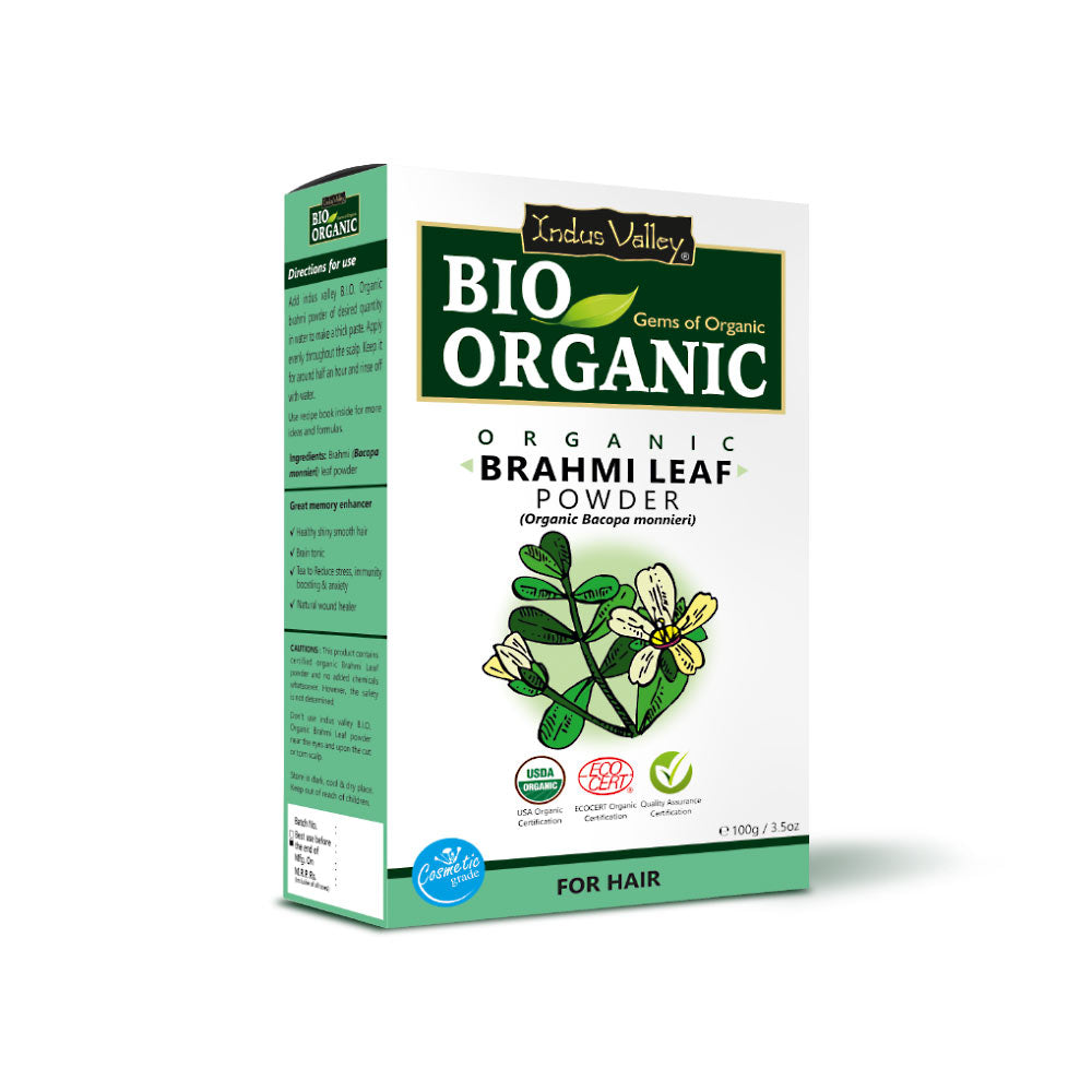 Indus Valley Bio Organic Brahmi Leaf Powder is a 100% pure and certified organic powder, obtained from crushing the farm-fresh and shade dried leaves of organically grown brahmi (Bacopa monnieri) plants. Loaded with hair-friendly nutrients, this brahmi powder will improve the overall health of your hair. Achieve strong, voluminous and gorgeous hair by using it regularly.