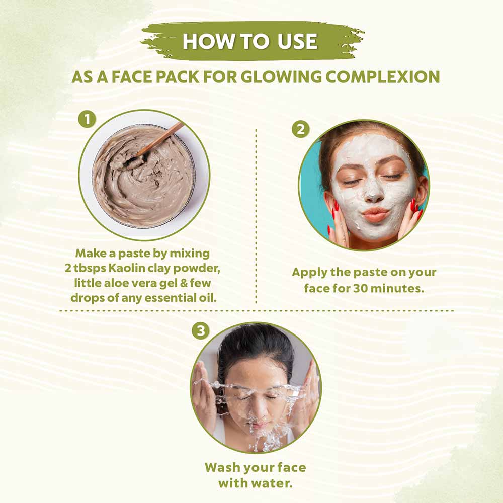 Bio-Organic Kaolin Clay Powder helps to lighten overall skin tone. It absorbs any impurities in your skin, such as oil, grime, or dead skin cells, that helps to achieve glass glow complexion. The product eliminates skin waste, reducing the appearance of dullness and restoring your skin's youthfulness.