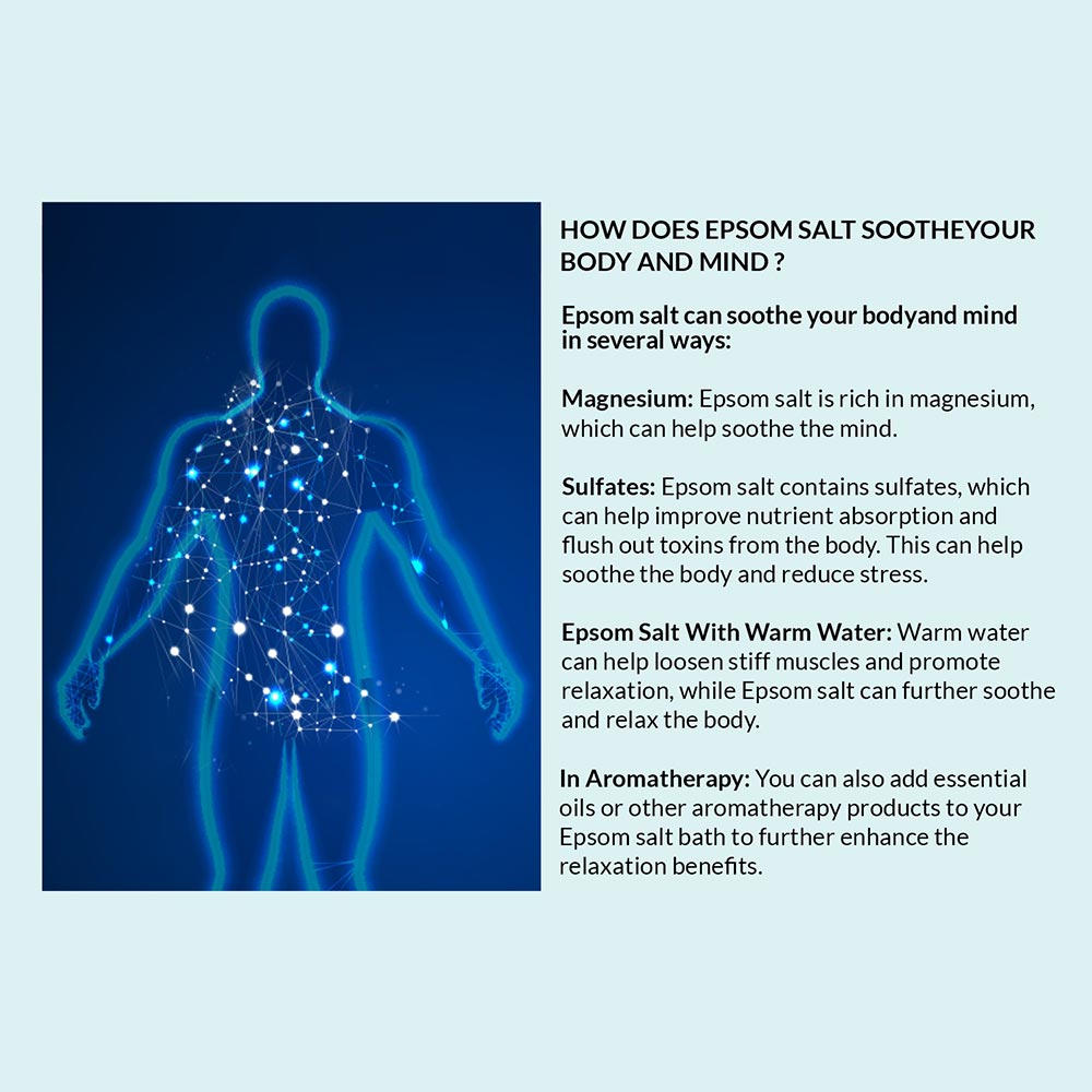 Epsom salt is used for a variety of purposes due to its numerous potential benefits, Bathing, Muscle and Joint Pain Relief, Foot Soaks, Skincare, Gardening, etc.
