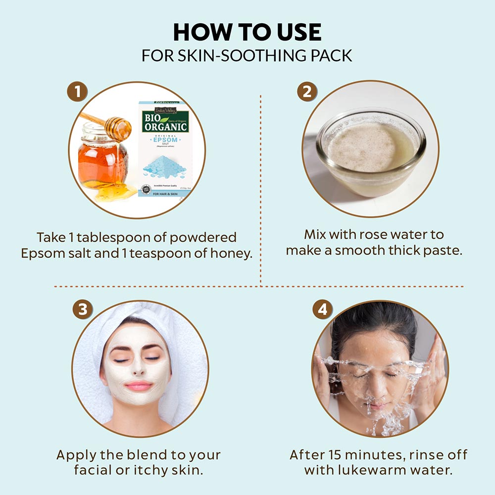 Yes, Indus Valley Chemical-free Epsom Salt powder does wonders for the skin. It heals dry skin with extraordinary radiance and smoothness. Epsom Salt cures and moisturizes dry and chapped lips. It is believed that soaking the feet in Epsom Salt cleanses away toxins and heavy metals from the body. Use organically procured Epsom Salt for head-to-toe wholesome beauty.
