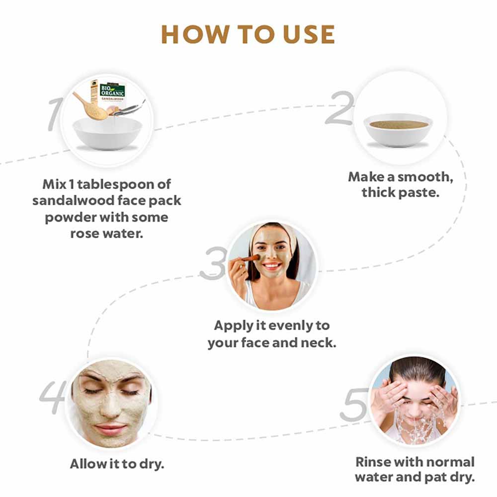 You can use the paste of sandalwood pack powder and apply as a face mask. Apply it to your face and leave it on for approximately 15 to 20 minutes.