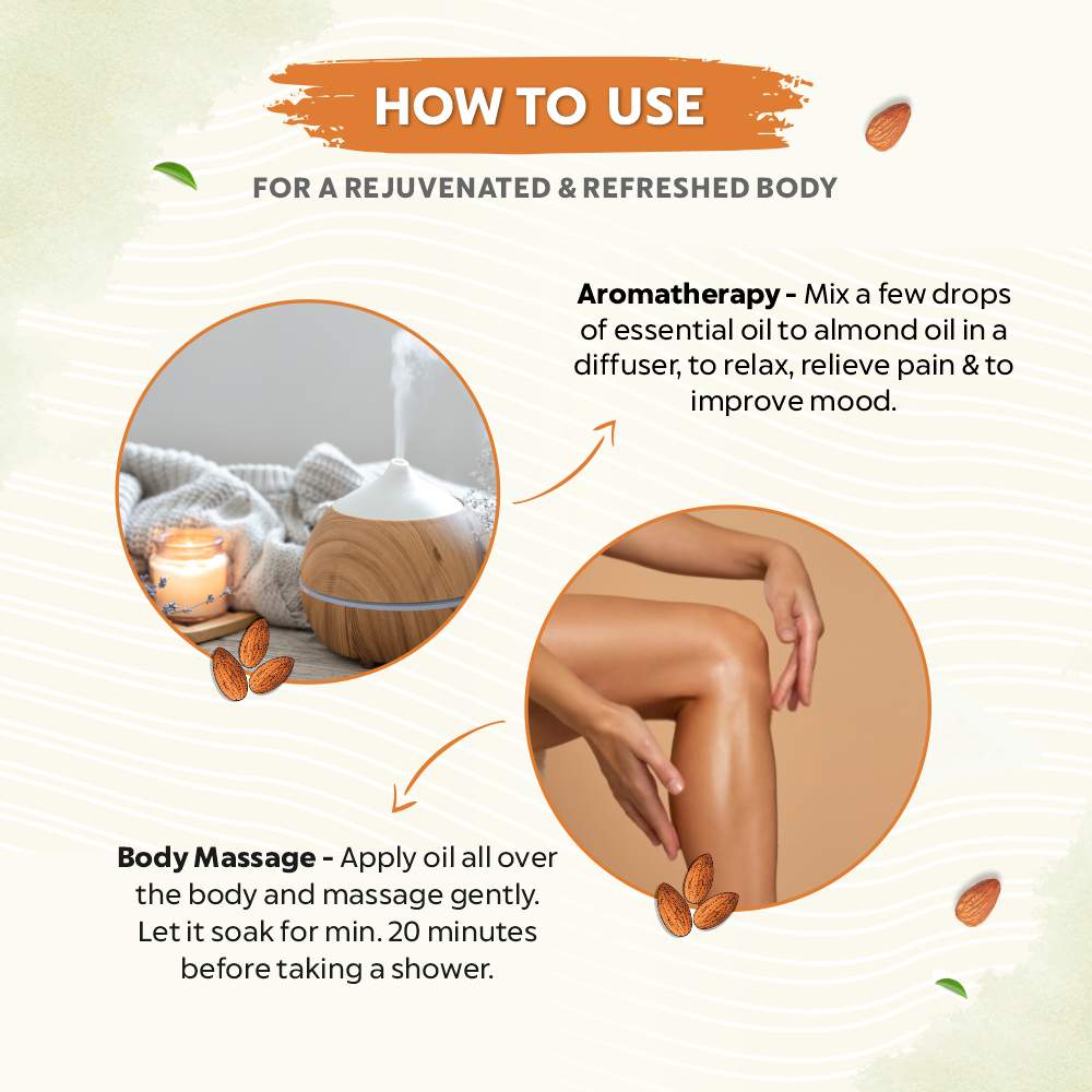 Pure, virgin almond oil is certified as edible by FSSAI, so you can use it as cooking oil. When used for daily consumption, it helps lower cholesterol levels and improves heart health.
